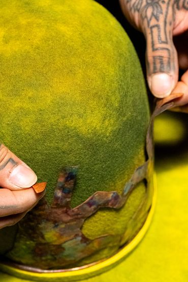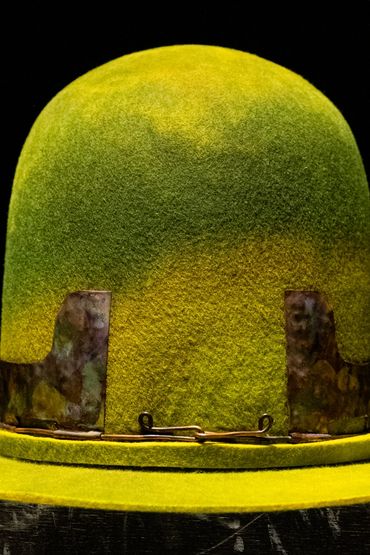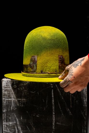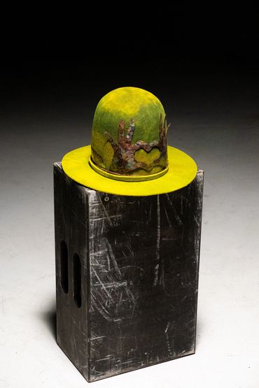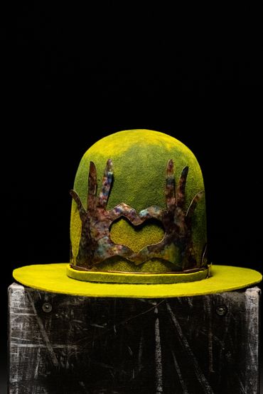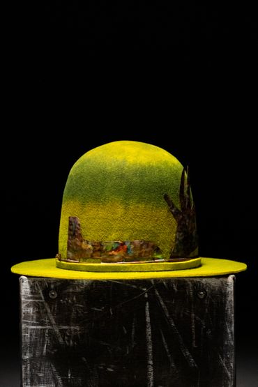 Beautiful hand dyed wool hat with custom copper band/crown.